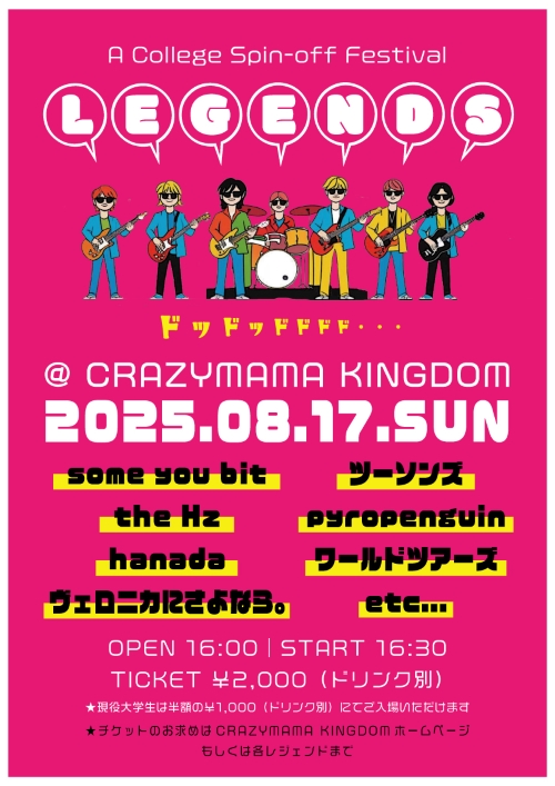 ※チケット予約はHP、又は各バンドにて。